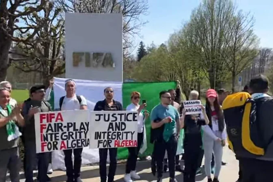 Sports / Football : Manifestation des supporters Algériens devant le siège de la FIFA réclamant que la rencontre Algérie vs Cameroun soit rejouée