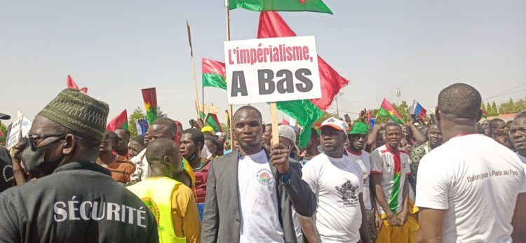 Au Burkina Faso, des milliers de manifestants se sont regroupés samedi 6 mai dans plusieurs grandes villes, pour apporter leur soutien au capitaine Ibrahim Traoré et dénoncer des "véilléités de déstabilisation" de leur pays. À Ouagadougou, les manifestants ont brûlé un drapeau français et celui de l'Union européenne sous les applaudissements de nombreux badauds qui criaient leur soutien au capitaine Ibrahim Traoré, arrivé au pouvoir par un coup d'État le 30 septembre 2022. " Non au complot de l'impérialisme, et de ses valets locaux, non à l'ingérence dans la transition ou encore A bas la France et A bas l'Otan", ont été quelques-uns des slogans scandés ou inscrits sur les pancartes lors des manifestations.