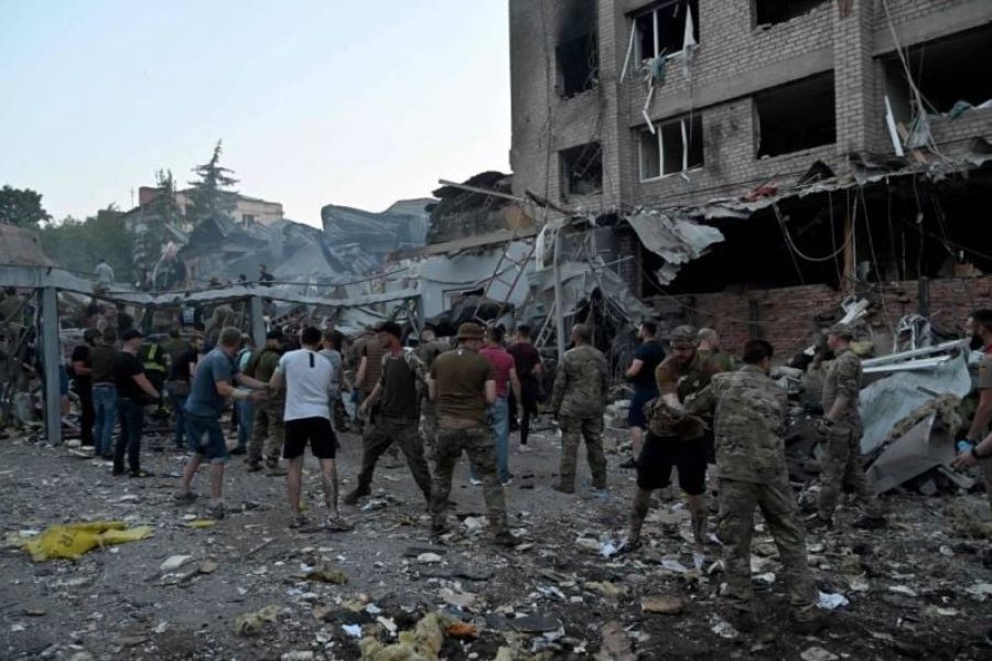 Au moins dix personnes sont mortes et 61 ont été blessées dans une frappe russe mardi contre un…
