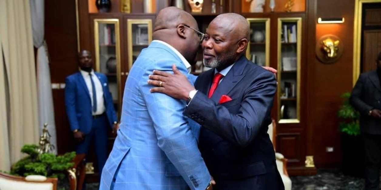 Et il se sont donné l’accolade, comme si de rien était. Élégant costume sombre pour l’un, complet bleu ciel à carreaux pour l’autre, ils se sont embrassés, comme si ces deux dernières années n’étaient déjà plus qu’un mauvais souvenir. Pour leurs premières retrouvailles officielles, mardi 28 juin, Félix Tshisekedi et Vital Kamerhe ont échangé pendant près de trois heures à la Cité de l’Union africaine, à Kinshasa. Une séquence à la fois attendue et étonnante, qui signe le grand retour en politique de l’ancien directeur de cabinet, acquitté le 23 juin dernier.