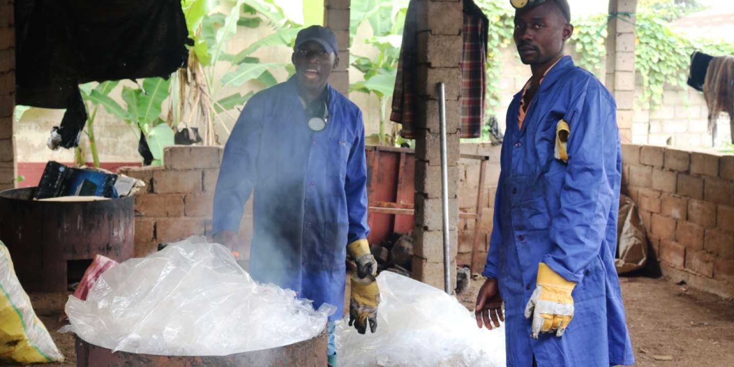 Comme tous les lundis et les samedis depuis 5 ans, Walter Djatsa et son équipe prennent d’assaut les cours d’eau et les drains de la ville de Douala. Armés de bottes, de cache-nez , des sacs poubelle et de bâtons, ils collectent des milliers de bouteilles plastiques qui écument la ville. « Nous avons compris que si nous ne faisons rien, les inondations allaient s’intensifier dans la ville. », explique Walter, ingénieur en sécurité industrielle. À l’issue de la collecte, une dizaine de tonnes de bouteilles plastiques est emportée sur des tricycles et prennent la direction de sa petite usine de traitement et de recyclage. Ici, les bouteilles plastiques sont triées, incinérées et transformées en d’autres objets. Malgré des moyens rudimentaires, cette initiative portée par Walter offre des solutions contre les déchets plastiques.