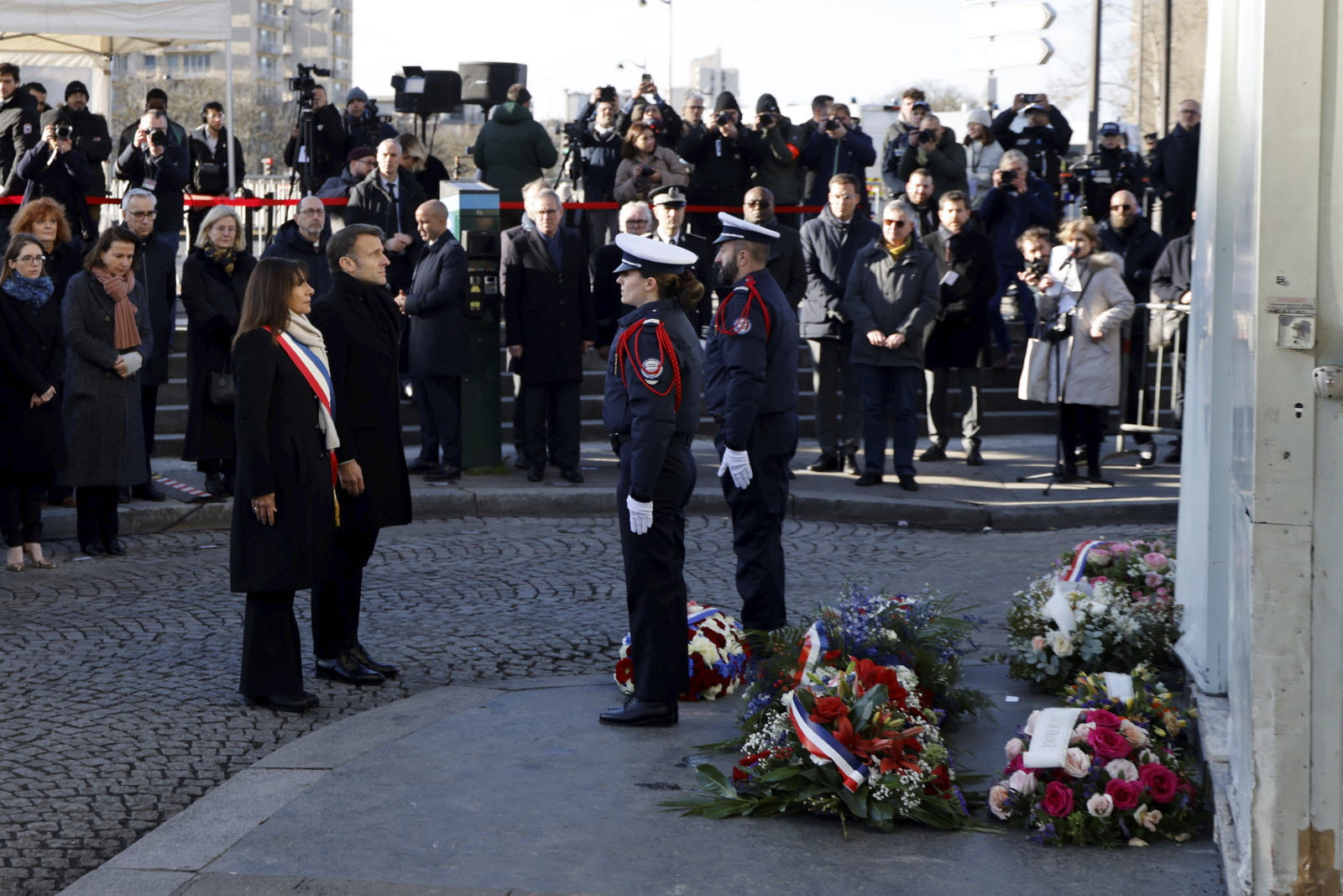 - Une cérémonie nationale présidée par le Président de la République devant les anciens locaux de Charlie Hebdo